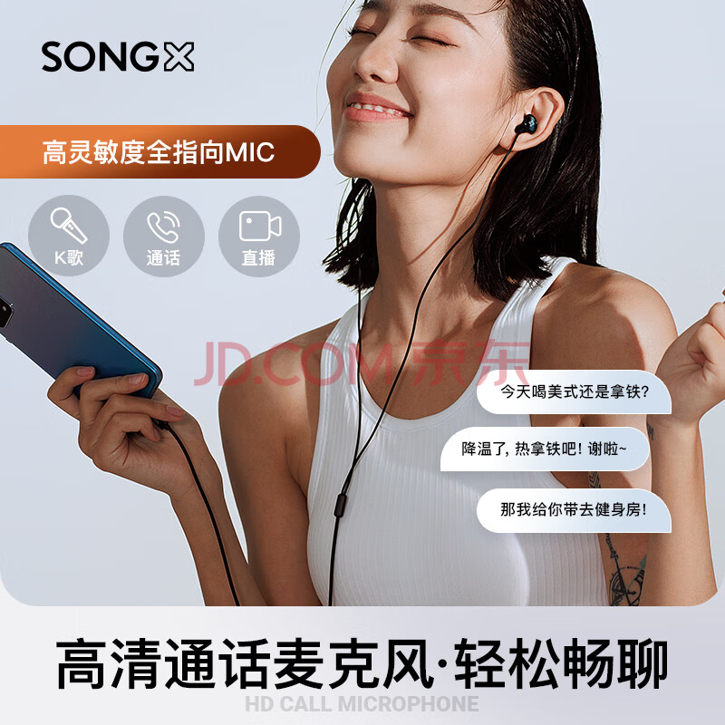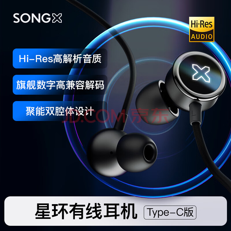 商品相册:SONGX 有线耳机type-c入耳式耳机Hi-Res金标认证K歌游戏华为小米vivo苹果15手机ipad通用扁头 SX01第