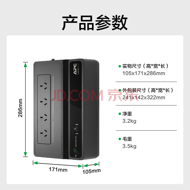 商品相册:APC施耐德BK650M2-CH ups不间断电源390W/650VA nas电脑网络设备停电应急备用ups电源电池第1张/共9