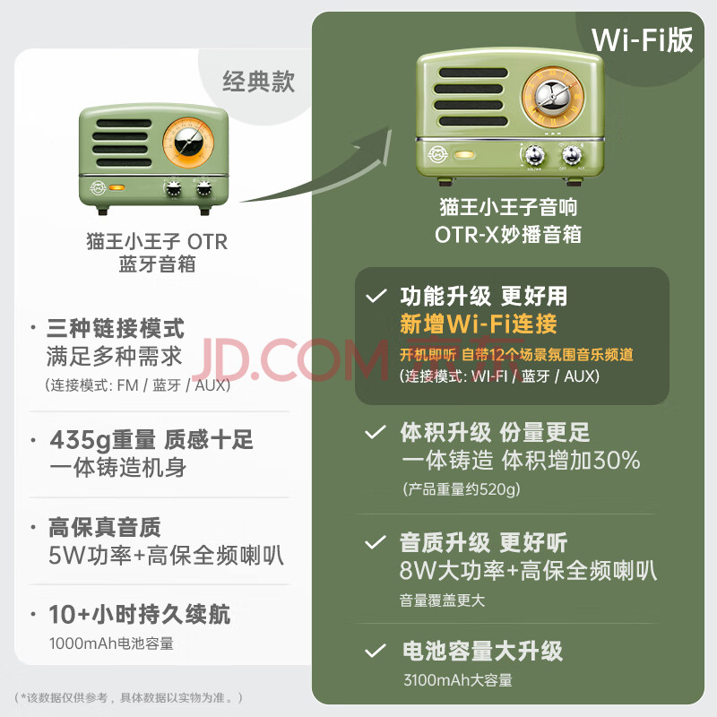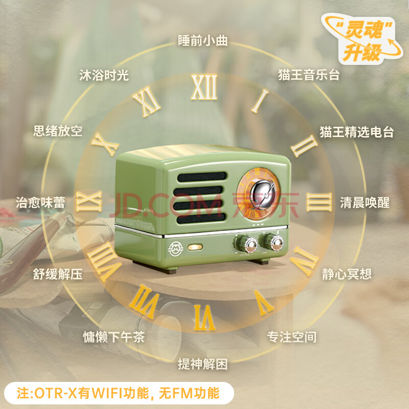 商品相册:猫王收音机猫王妙播音箱小王子OTR-X WiFi无线便携蓝牙音响复古家用金属低音炮 送男女高级节日礼物第