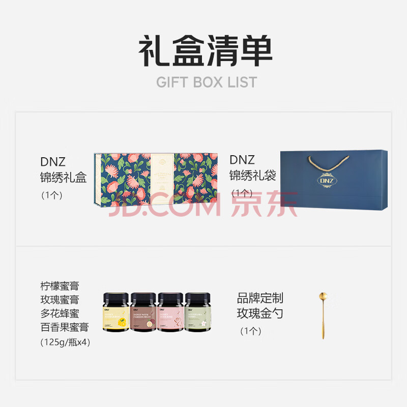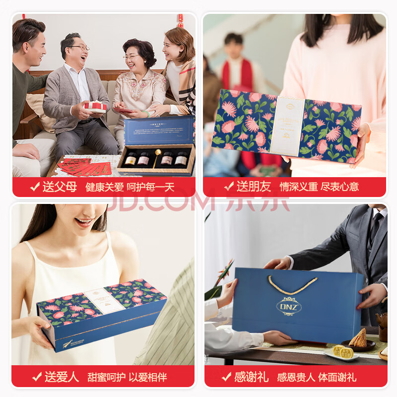 商品相册:DNZ新西兰进口 蜂蜜礼盒多种风味125g*4瓶 天然滋补品送长辈节日礼品第