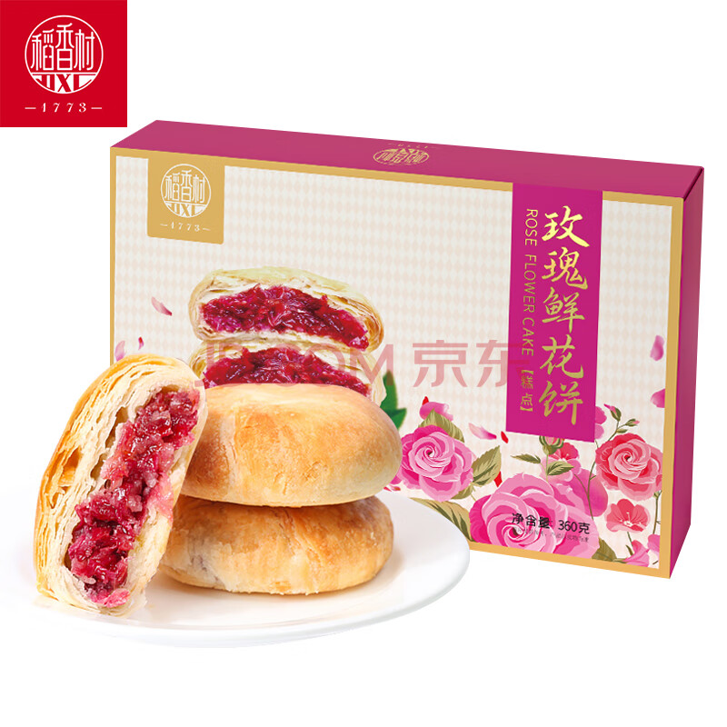 商品相册:稻香村 鲜花饼 玫瑰饼360g原味12枚饼干糕点小吃休闲零食老字号团购送礼第
