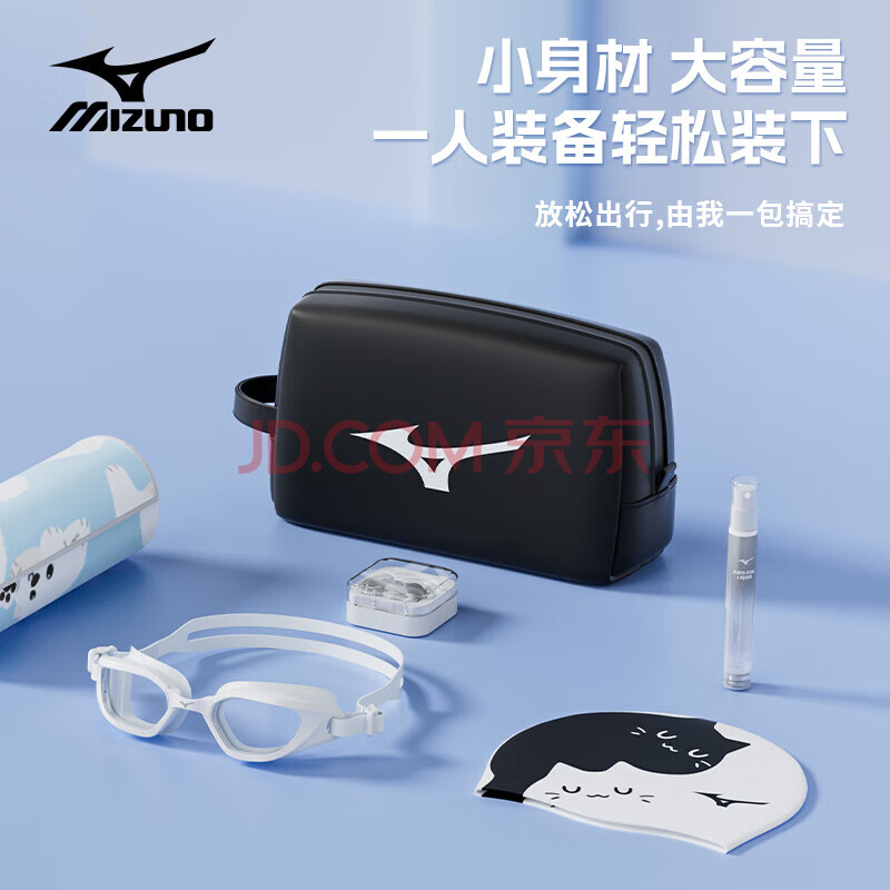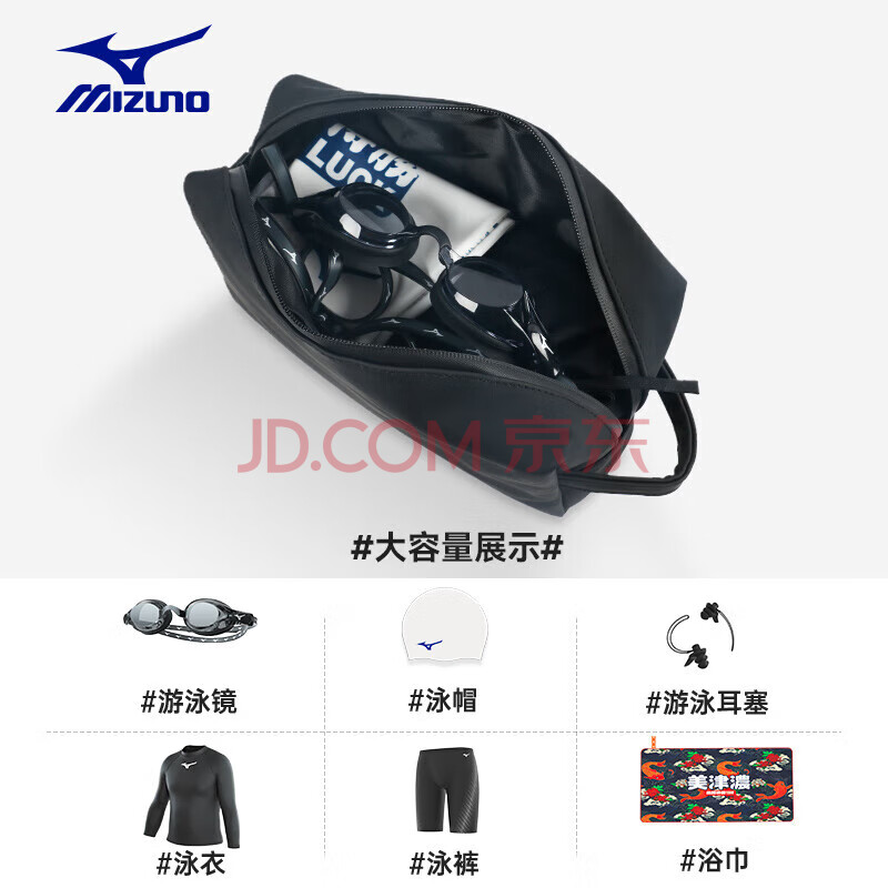 商品相册:美津浓(MIZUNO)泳包男女干湿多功能防泼水加大运动健身手提便携游泳收纳包2007黑第1张/共7