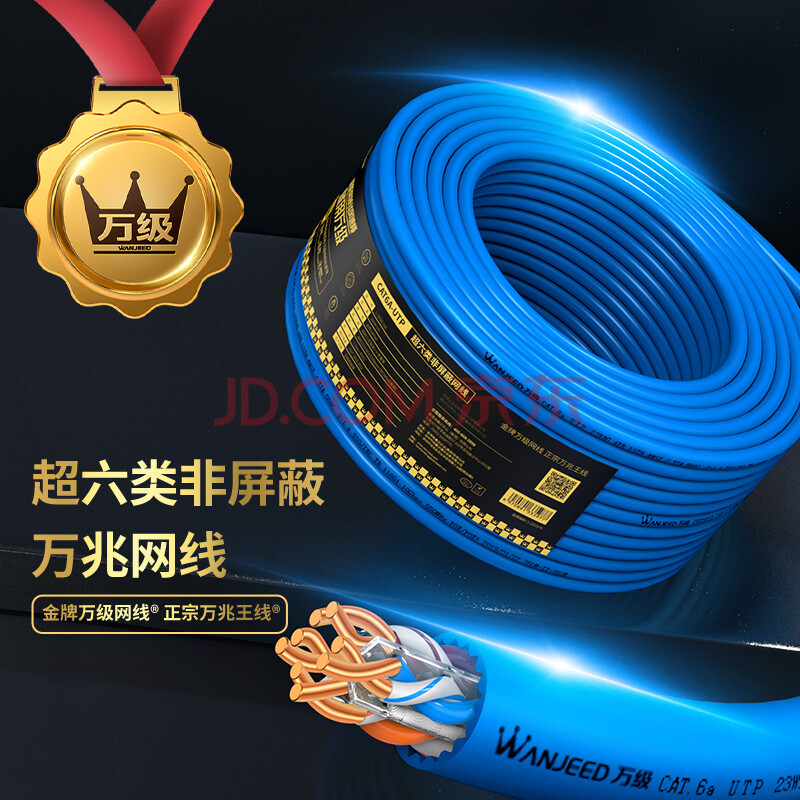 商品相册:万级超六类网线非屏蔽【国标23AWG-0.57mm无氧纯铜芯】CAT6A万兆高速网络工程家装布线一箱线30米 蓝色第