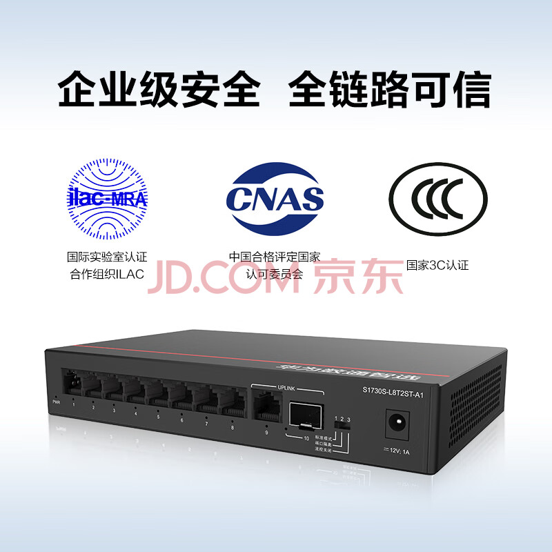 商品相册:华为数通智选S1730S-L8T2ST-A1 8口千兆电+1上行电口+1上行光口S1730S系列园区以太网交换机第