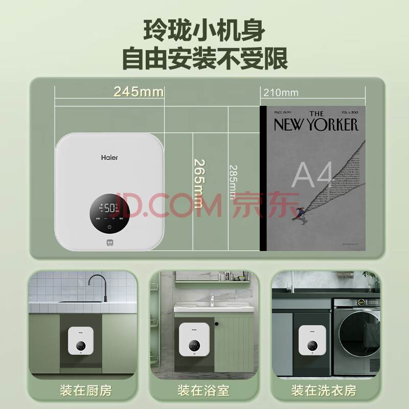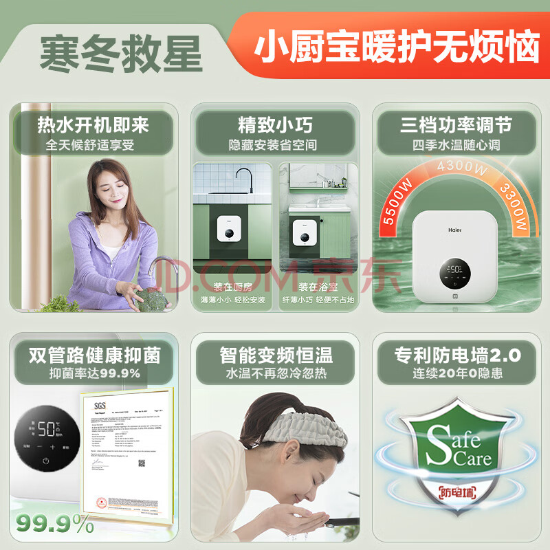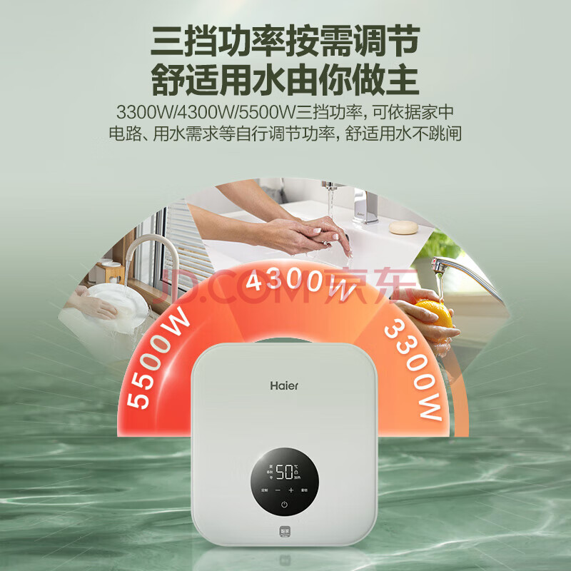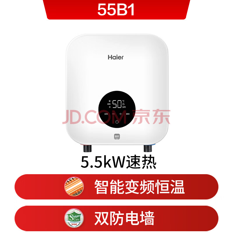 商品相册:海尔即热式小厨宝电热水器 55B1 5500W双驱变频即开即热智能恒温 家用小体积台下型厨房热水宝第