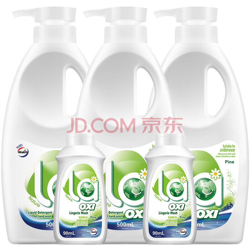 商品相册:威露士La有氧洗手洗洗衣液500ml*3+内衣净松木香90ml*2抑菌除螨可洗内衣第
