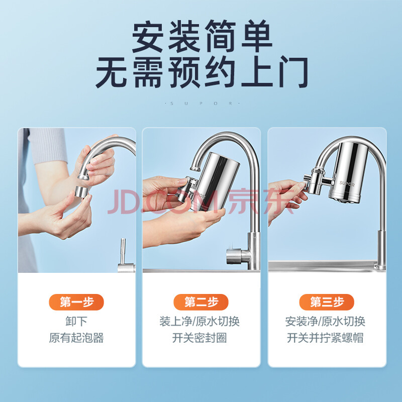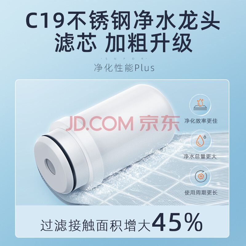 商品相册:苏泊尔(SUPOR)水龙头过滤器升级不锈钢可清洗滤芯除氯阻垢1机4芯家用净水器厨房卫生间自来水过滤C19四芯第