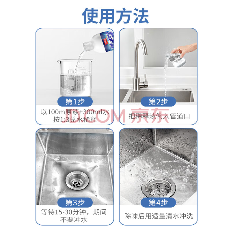 商品相册:巨奇下水道防臭除臭剂厨房管道疏通溶解厕所马地漏下水道防反臭500ml第