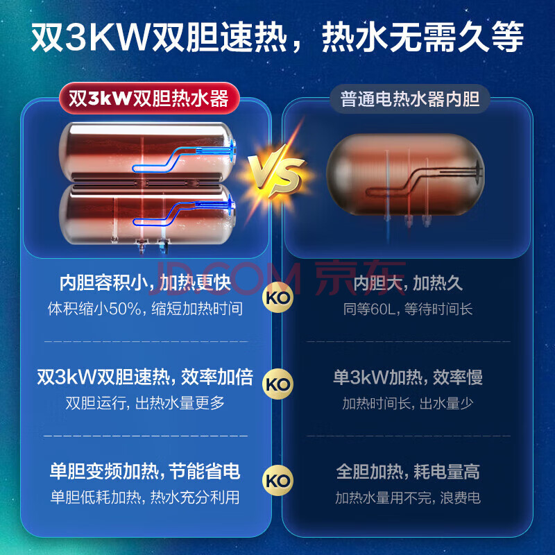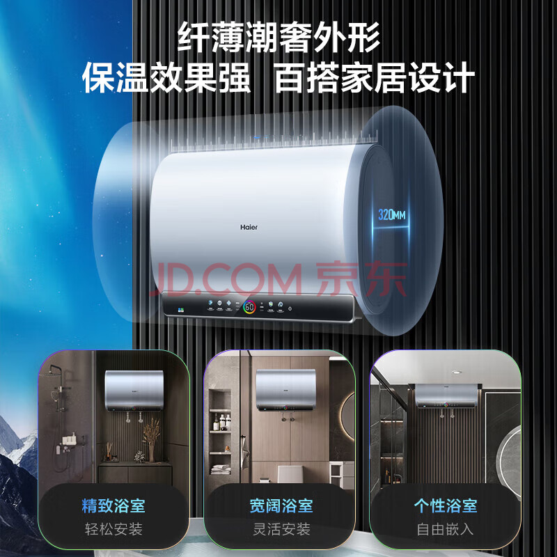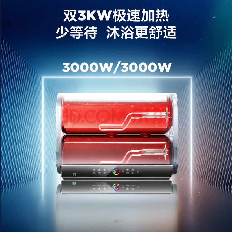 商品相册:海尔(Haier)80升超薄扁桶双胆电热水器家用储水式隐藏安装双3000W速热双镁棒免换 EC8003-BOOKU1 第
