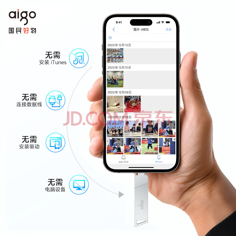 商品相册:爱国者(aigo)64GB Lightning USB3.0苹果U盘U368 适配苹果iphone14/ipad9及以下版本机型 手机电脑两用第