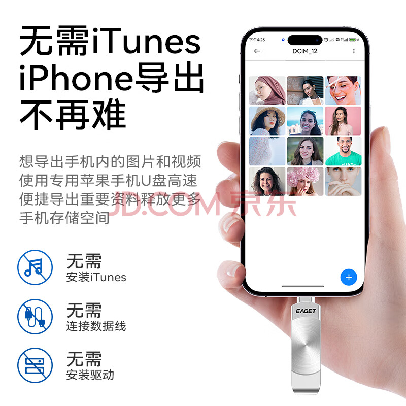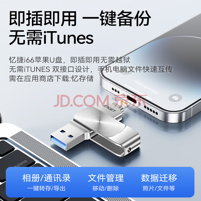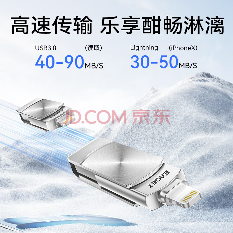 商品相册:忆捷(EAGET)128GB Lightning USB3.0苹果U盘i66苹果官方MFI认证一键备份iphone/ipad手机电脑两用优盘 银色第