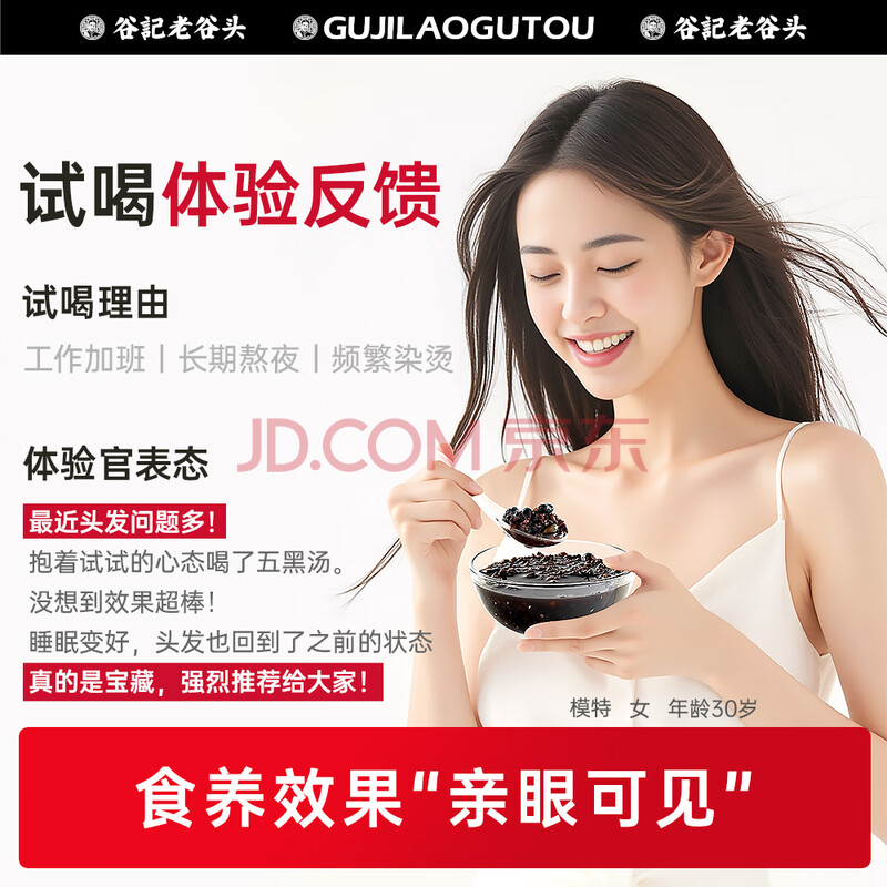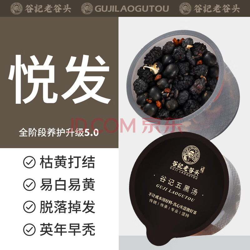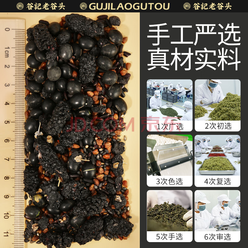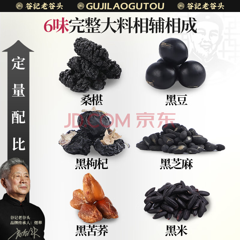 商品相册:老谷头五黑茶汤桑葚黑枸杞黑芝麻黑豆黑米黑苦荞茶五黑养生茶900g第