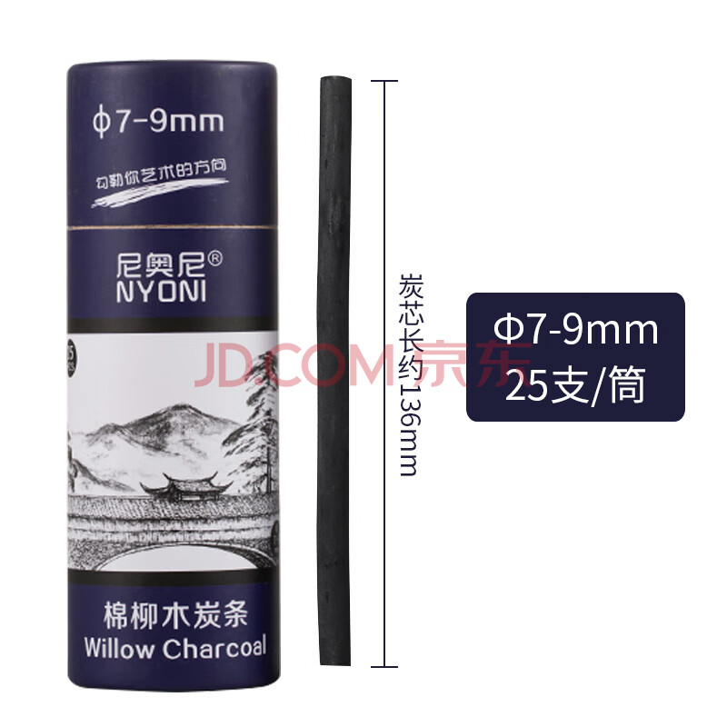 商品相册:尼奥尼(NYONI)棉柳木碳条圆形7-9mm素描炭笔碳棒碳精条美术绘画写生速写学生起稿打型画画笔25支N8135第