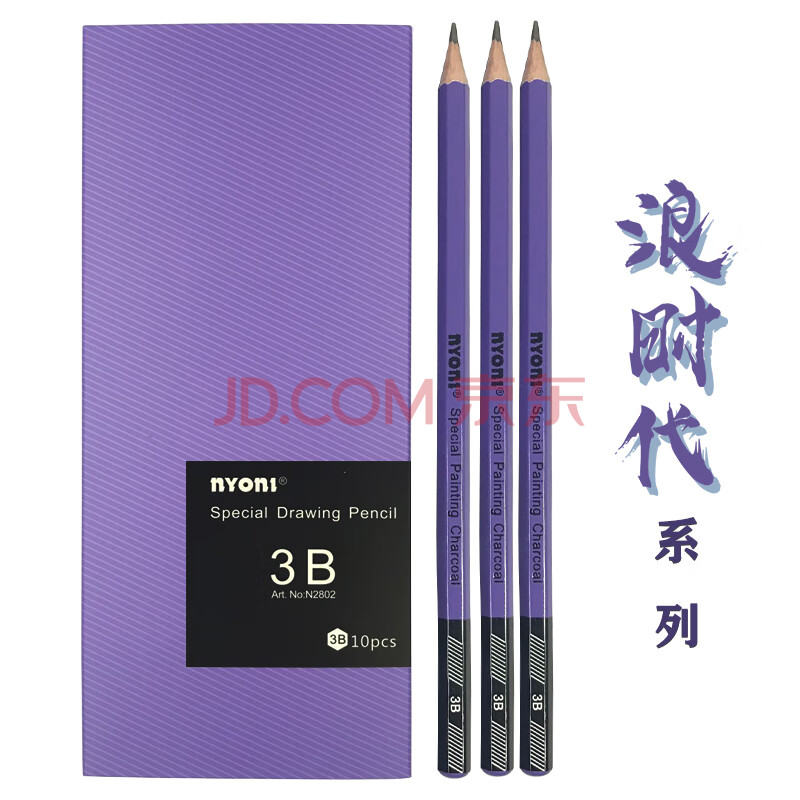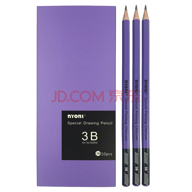 商品相册:尼奥尼(NYONI)3B素描铅笔六角杆专业美术碳素笔手绘速写专用初学者艺考试画画工具10支/盒N28023B第