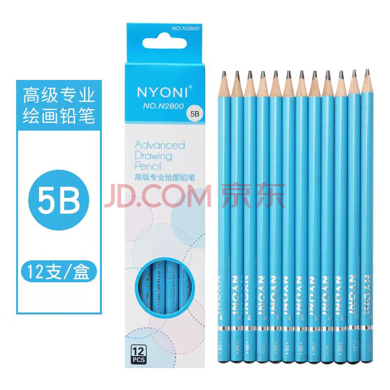 商品相册:尼奥尼(NYONI)5B素描铅笔圆杆专业美术碳素笔手绘速写专用初学者艺考试画画工具12支/盒N28005B第