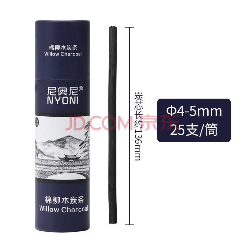 商品相册:尼奥尼(NYONI)棉柳木碳条圆形4-5mm素描炭笔碳棒碳精条美术绘画写生速写学生起稿打型画画笔25支N8135第