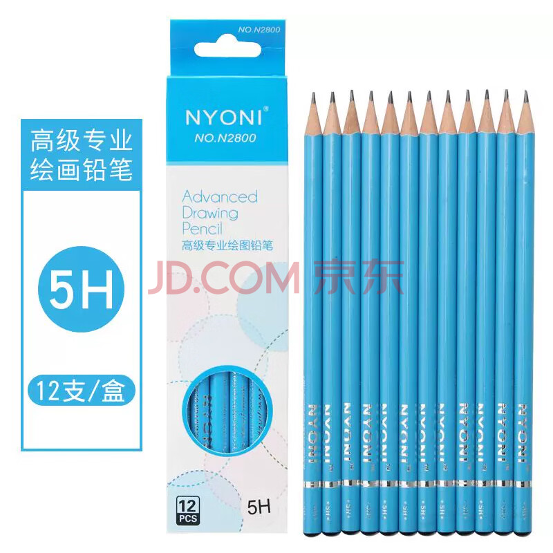 商品相册:尼奥尼(NYONI)5H素描铅笔圆杆专业美术碳素笔手绘速写专用初学者艺考试画画工具12支/盒N28005H第