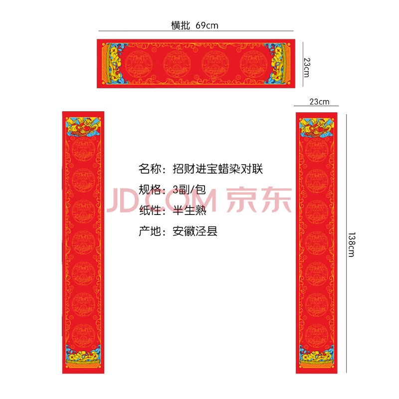 商品相册:一海堂文化一海堂 春联对联纸万年红宣纸对子空白福字斗方专用纸传统春联红纸 七言招财进宝23*138cm*3副第