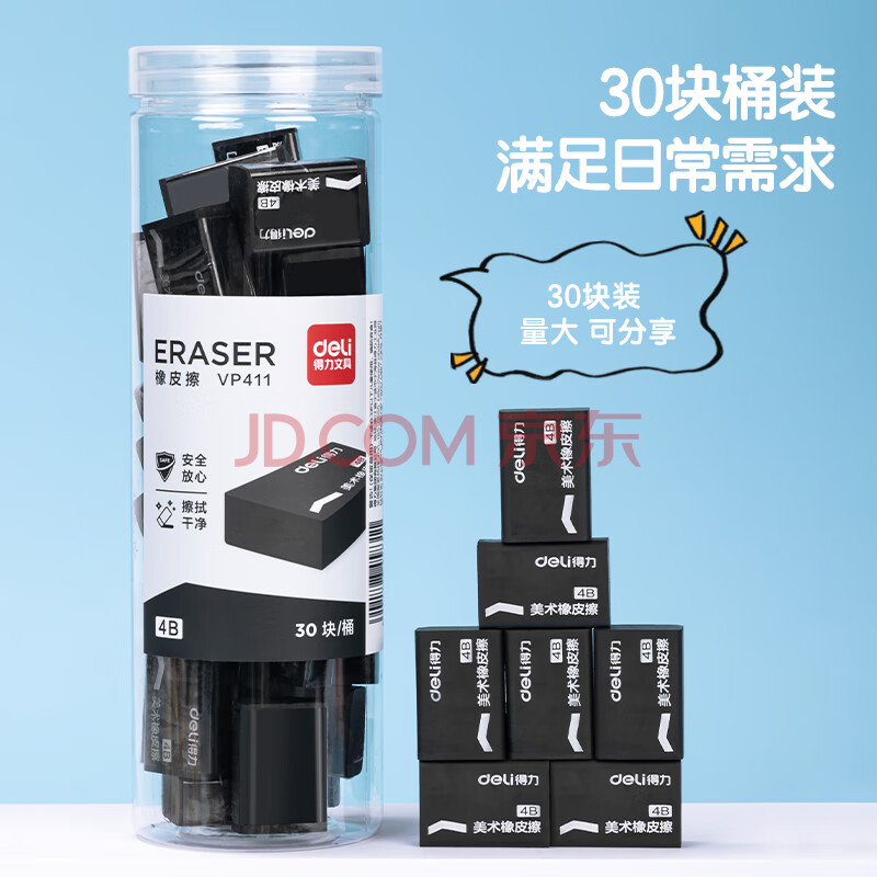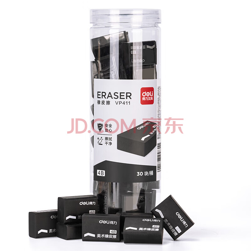 商品相册:得力(deli) 30块装橡皮擦 中考高考美术绘图橡皮柔软易擦少屑学生开学文具 黑色桶装第