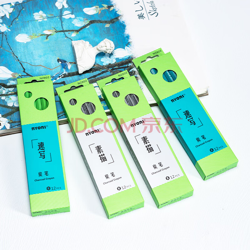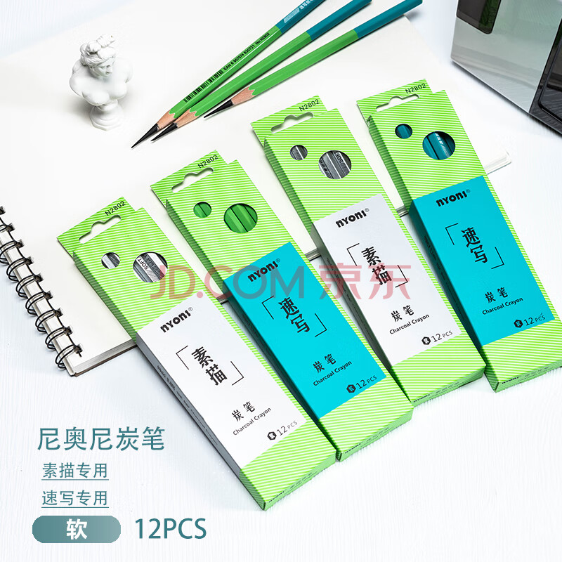 商品相册:尼奥尼(NYONI)炭笔升级款美术生专用素描铅笔初学者绘画速写学生联考艺考试专业工具-速写12支/盒N2802第