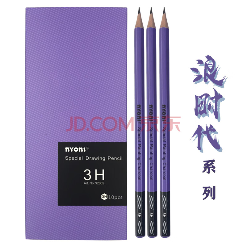 商品相册:尼奥尼(NYONI)3H素描铅笔六角杆专业美术碳素笔手绘速写专用初学者艺考试画画工具10支/盒N28023H第