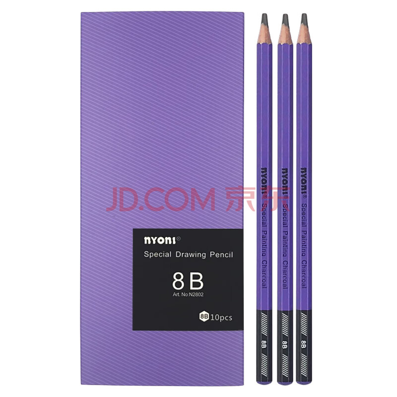 商品相册:尼奥尼(NYONI)8B素描铅笔六角杆专业美术碳素笔手绘速写专用初学者艺考试画画工具10支/盒N28028B第