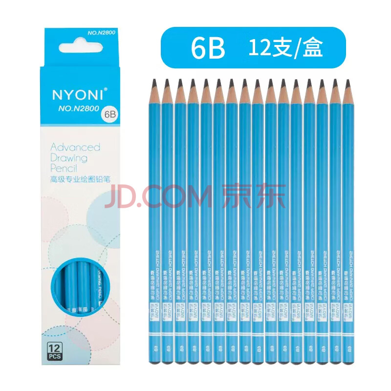 商品相册:尼奥尼(NYONI)6B素描铅笔圆杆专业美术碳素笔手绘速写专用初学者艺考试画画工具12支/盒N28006B第