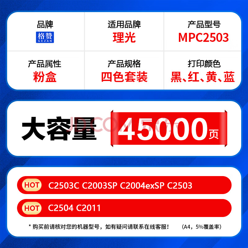 商品相册:格赞适用理光mp c2011sp粉盒MPC2503C 2504 C2003SP C2004exSP C2503 C2011打印机墨粉硒鼓四色套装大容量第