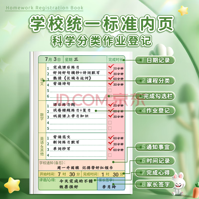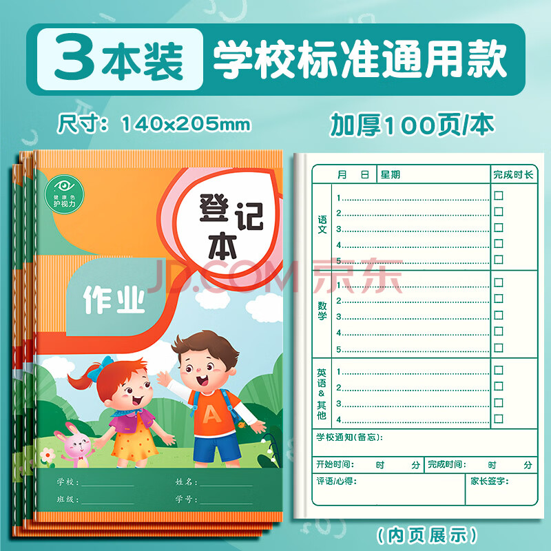 商品相册:舒星A5加厚作业登记本96页小学生专用一二三年级作业记录本家庭作业薄抄写抄作业本开学必备 教材款3本第