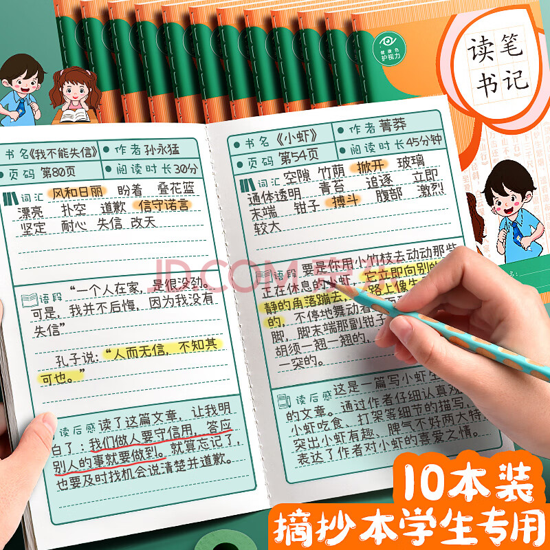 商品相册:舒星A5读书笔记本好词好句摘记本72页小学生语文阅读摘抄本记录卡阅读笔记专用记录本一三四年级10本装第