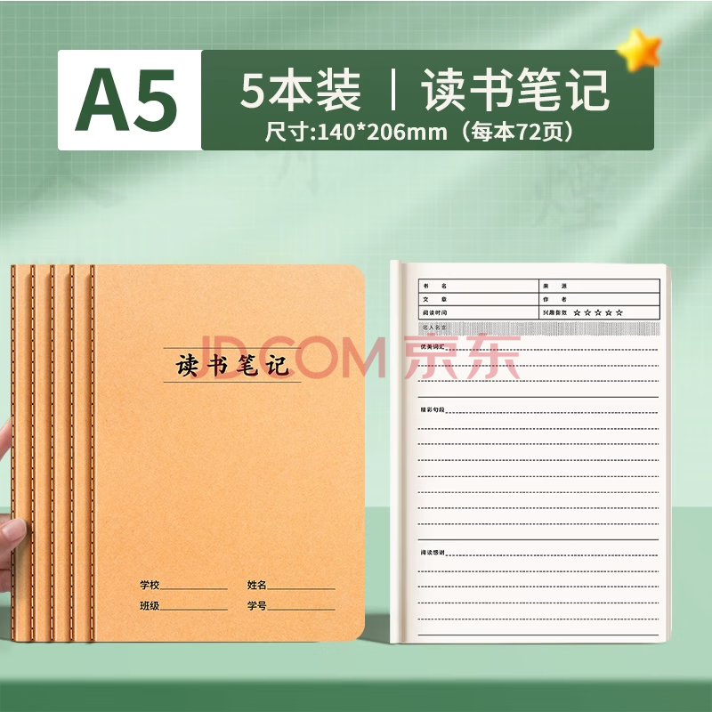 商品相册:舒星a5读书笔记本好词好句摘抄卡阅读记录本86页小学生专用语文阅读笔记专用记录本六年级读后感5本装第