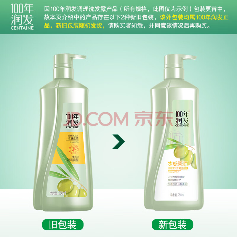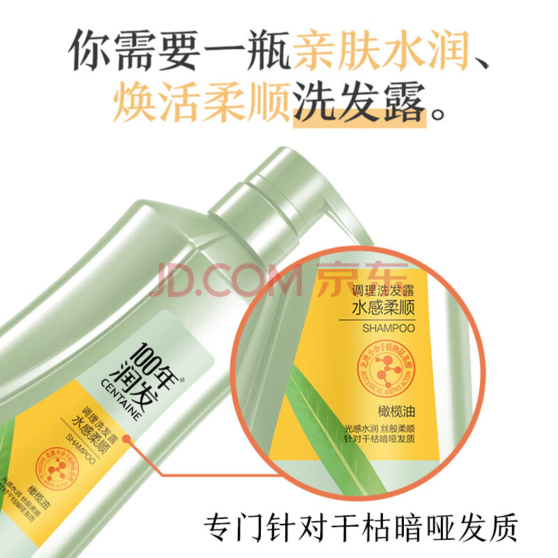 商品相册:100年润发氨基酸水感柔顺调理洗发水男女士洗发露液头水膏百年润发750ML第