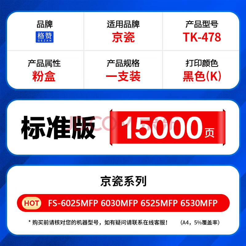 商品相册:格赞TK478粉盒 适用京瓷Kyocera FS-6025MFP硒鼓6030MFP 6525MFP 6530MFP打印机复印机墨粉盒墨盒碳粉墨粉第