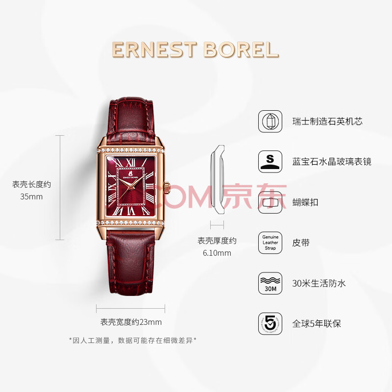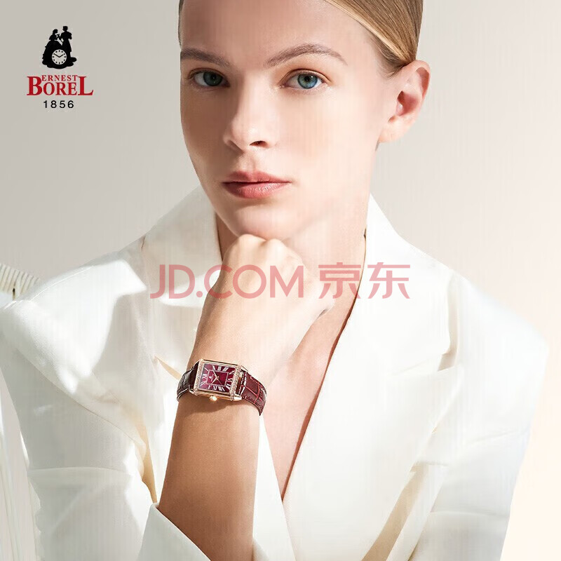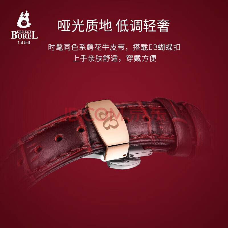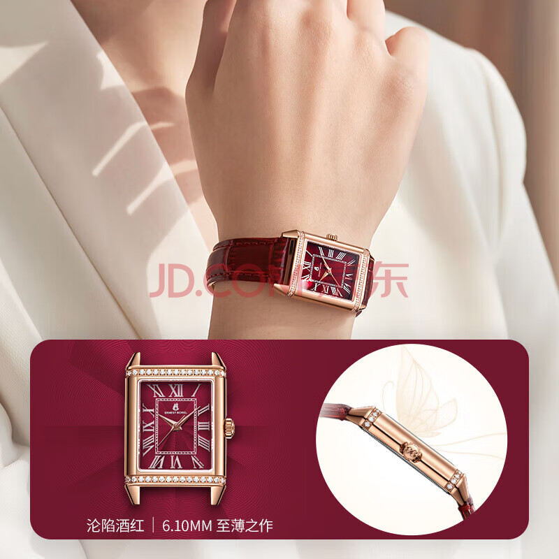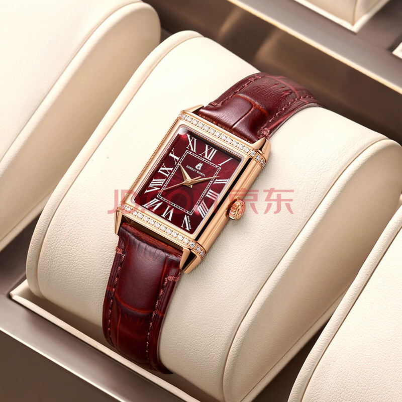 商品相册:依波路(ERNEST BOREL)瑞士手表女 【新年礼物】 经典酒桶罗马时符红色皮带镶宝石英女表第