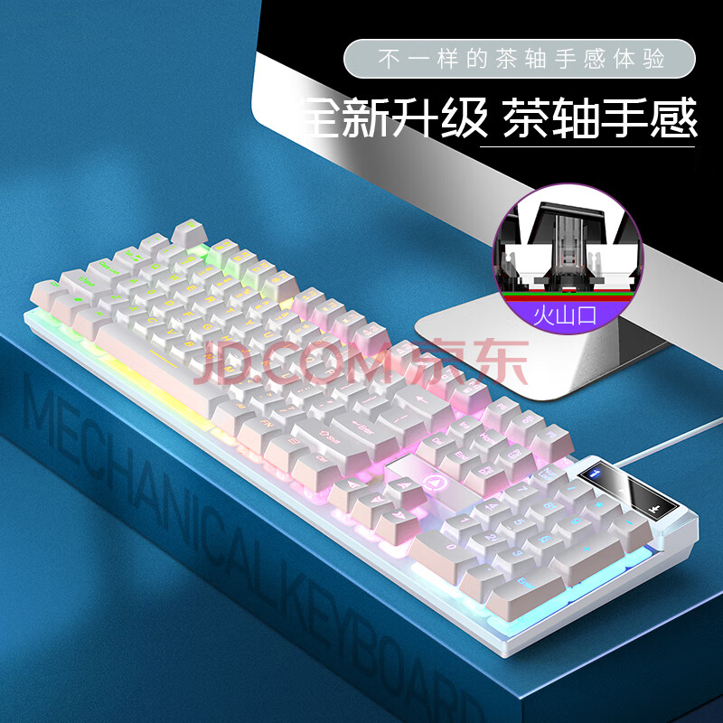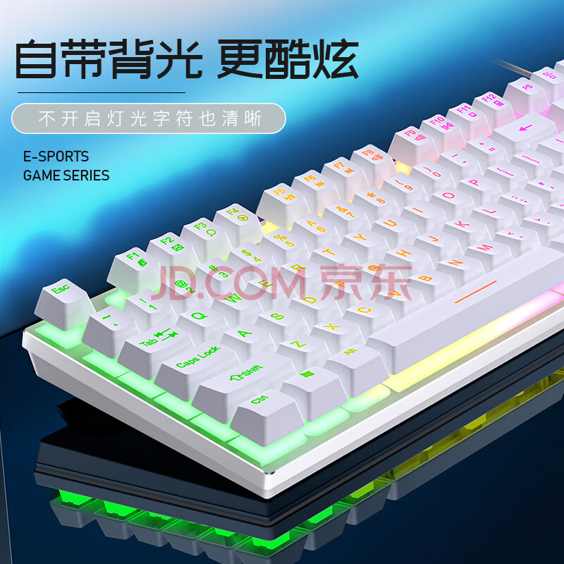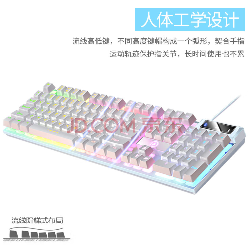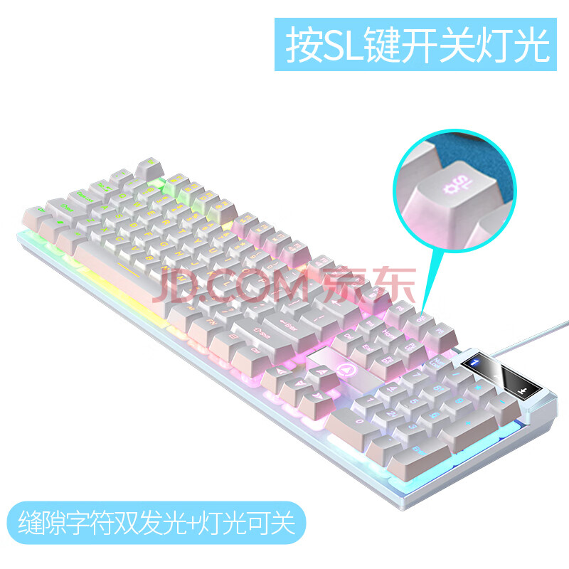 商品相册:银雕(YINDIAO) K500键盘彩包升级版 机械手感 游戏背光电竞办公 USB外接键盘 全尺寸 白色混光有线键盘第