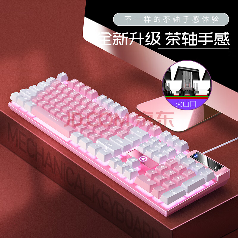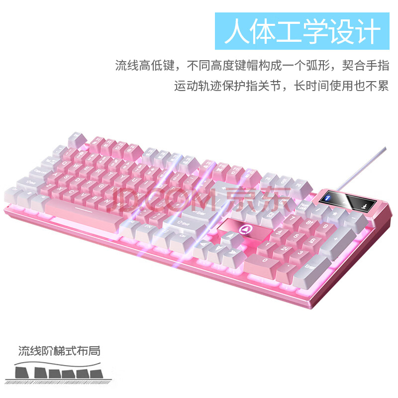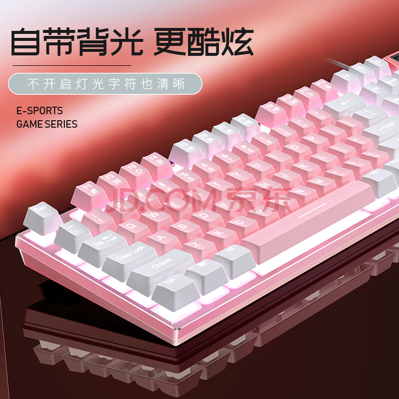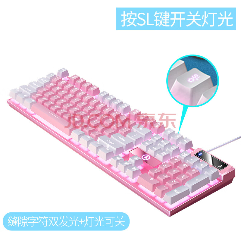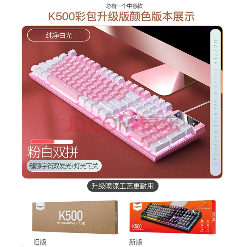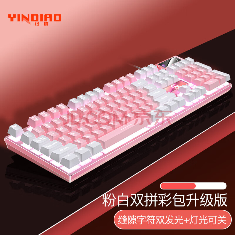 商品相册:银雕(YINDIAO) K500键盘彩包升级版 机械手感 游戏背光电竞办公USB外接键盘 粉白双拼白光有线键盘第