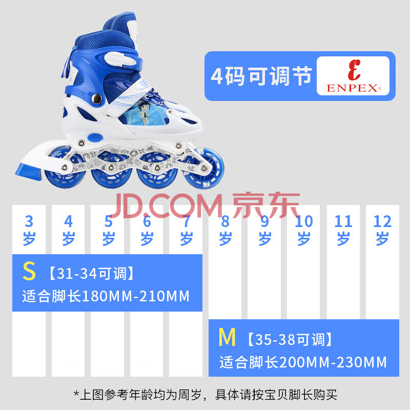 商品相册:EVERVON轮滑鞋儿童 溜冰鞋男女童初学者337蓝色 附头盔 M号适合35-38码 第