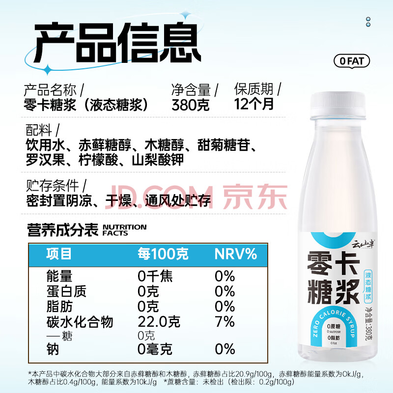 商品相册:云山半0卡糖浆零卡糖380g 零脂肪0热量赤藓糖醇代木糖醇黑咖啡奶茶原料第