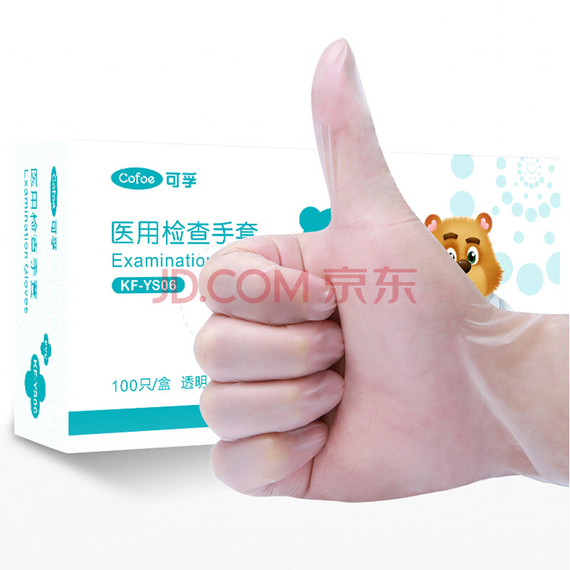 商品相册:可孚一次性手套医用防护手套薄膜透明防水洗碗医疗pvc手套50只/盒-S码第