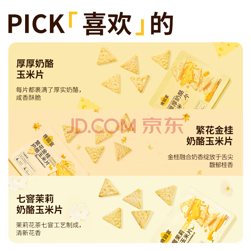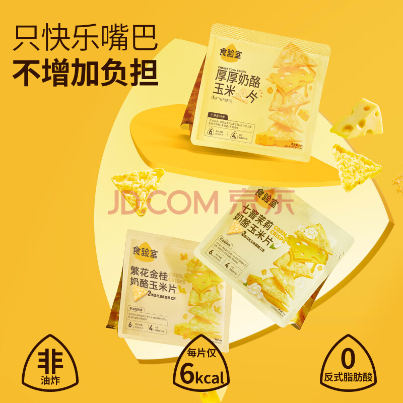 商品相册:食验室奶酪玉米片组合口味非油炸高膳食纤维休闲零食40g*8盒口味随机第