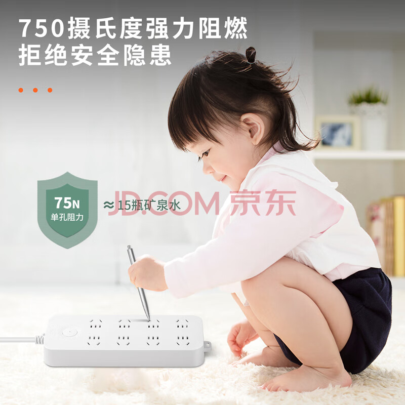 商品相册:得力33916(03) 雅白系列新国标插座/插线板/插排/排插/接线板/拖线板延长线插座 8位插孔全长3米 1个装第
