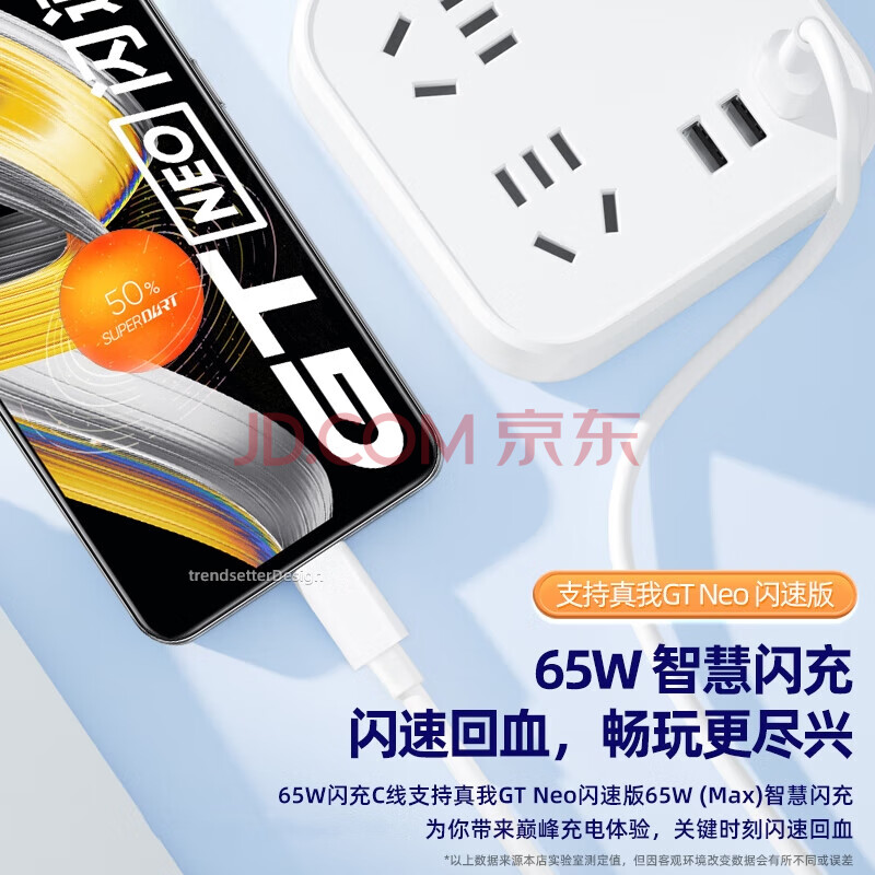 商品相册:trendsetter适用于realme真我数据线65W闪充2米加长gt2pro/neo2t/q3s/q2/x50/70/v13/15/x2快充充电线第