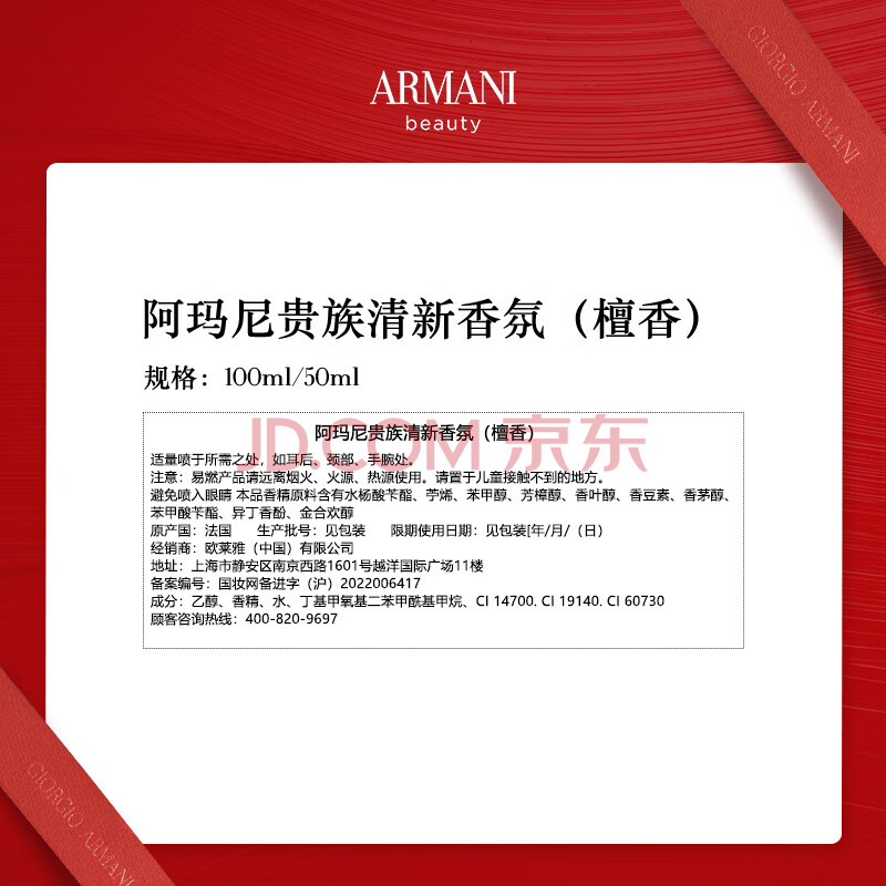 商品相册:阿玛尼颐和清檀100ml 中性清新香水礼盒木质调留香持久生日礼物送女友第