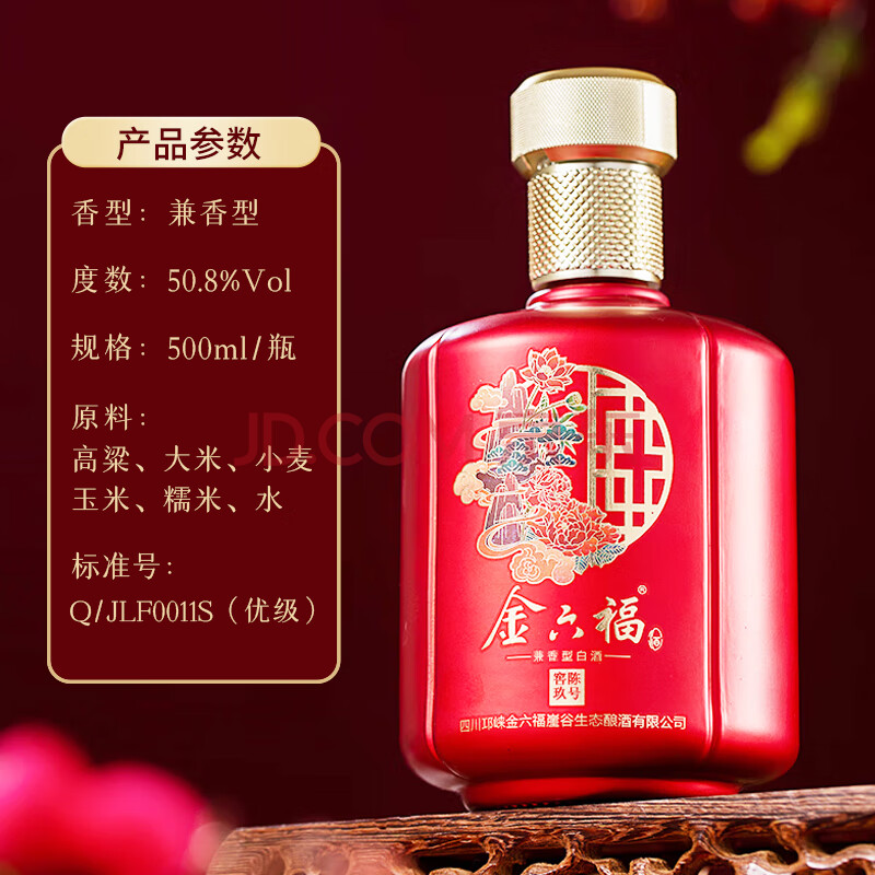 商品相册:金六福窖陈玖号 兼香型白酒 50.8度 500ml*6瓶 整箱装 婚宴礼赠第