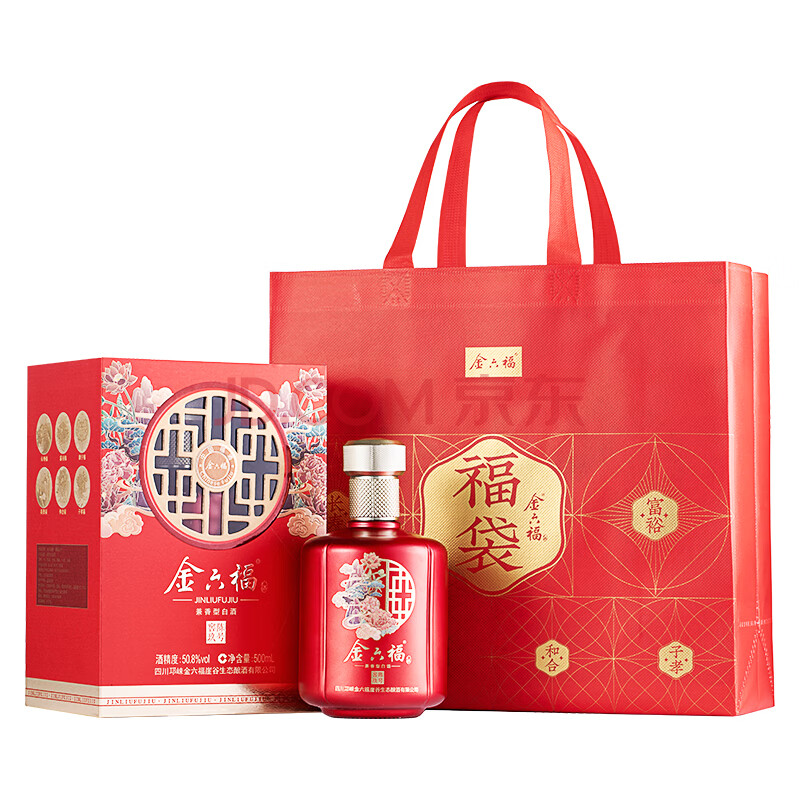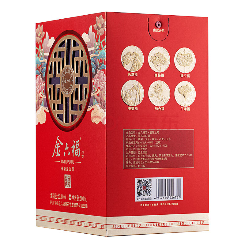 商品相册:金六福窖陈玖号 兼香型白酒 50.8度 500ml 单瓶装 婚宴礼赠第