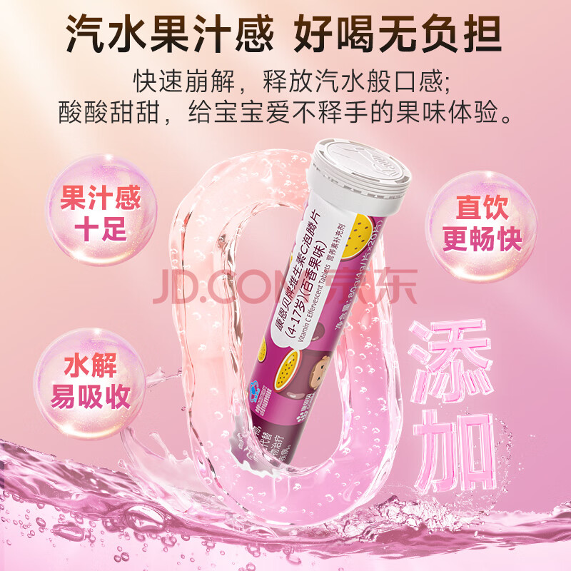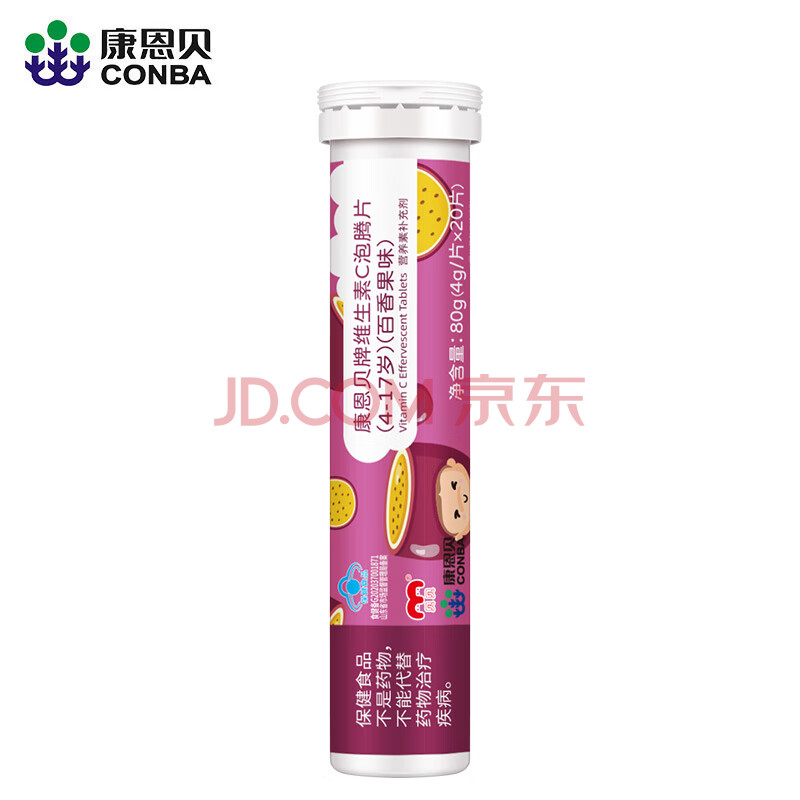 商品相册:康恩贝 维生素C泡腾片4g/片*20片 儿童学生4-17岁 VC 补充维c 百香果味第1张/共8