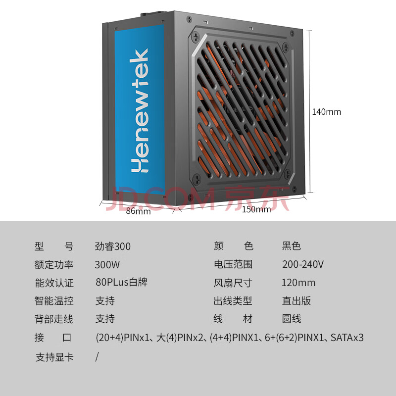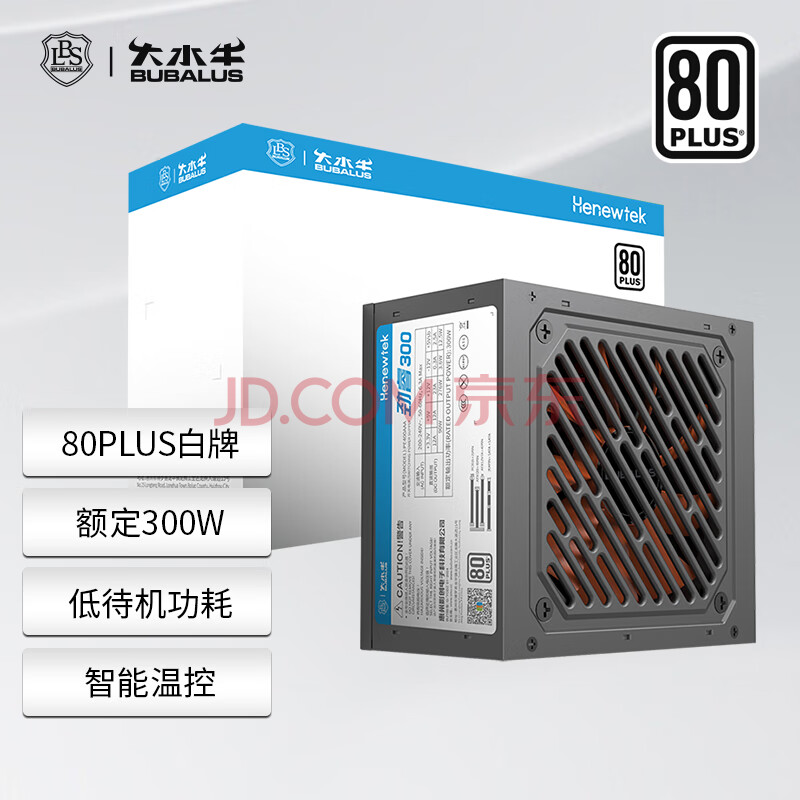 商品相册:大水牛(BUBALUS)额定300W 劲睿300台式电脑电源(80PLUS白牌/宽幅/12CM温控风扇/低待机功耗/支持背线)第