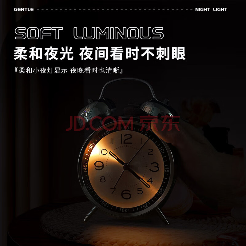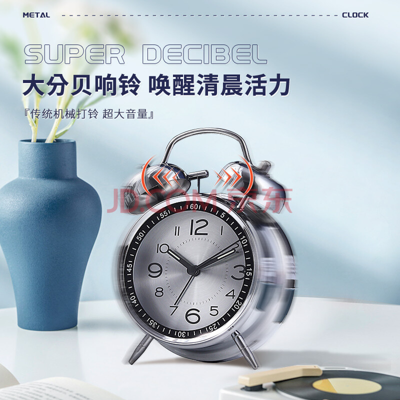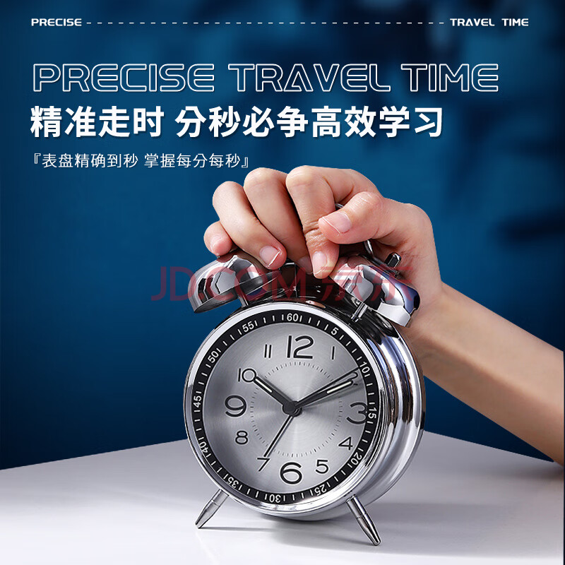 商品相册:北极星(POLARIS)闹钟个性创意小时钟夜灯简约学生宿舍专用卧室床头闹铃 K6401银面【开学季】第