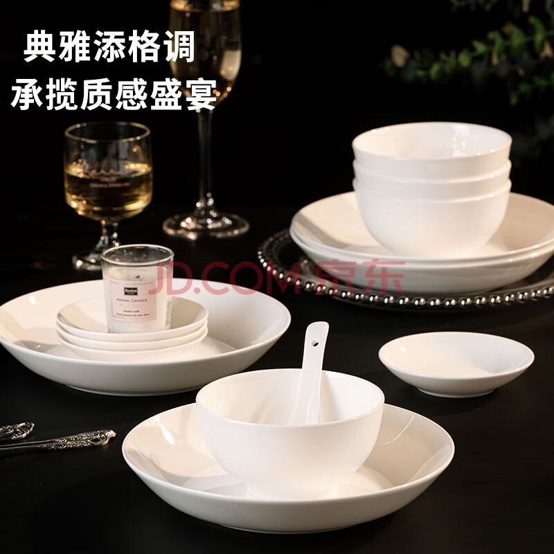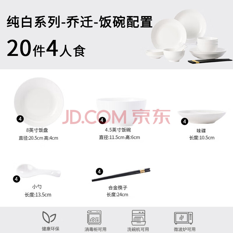 商品相册:浩雅 釉下彩景德镇陶瓷餐具家用碗碟碗具餐具套装饭碗盘子20头纯白第