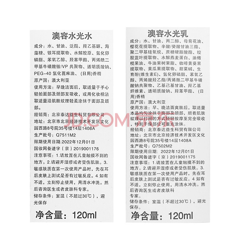 商品相册:澳容水光水乳套装120ml*2男女士补水保湿舒缓修护修红节日礼物第